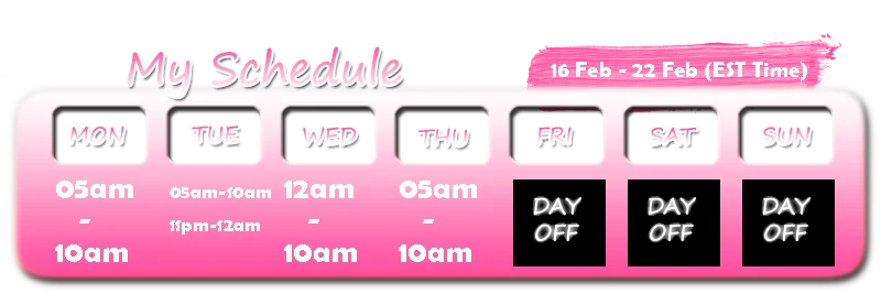 Брудні розмови, Ахеґао, Демонстрація геніталій, Йога, Задерта спідниця, Секс-іграшки, Фут-джоб, Unlimited lush control+400 tkns, Fuck machine+700 tkns (10 mins), Fuck machine+1000tkn(20 mins), Еротичні танці, Олійне шоу, Фут-фетиш, Спанкінг, Топлес, Інструкція з мастурбування, Рогоносці, Оцінювання прутня, Верблюжа лапка, Dildo play+199 tkns, Unlimited lush control+300 tkns, Стриптиз, Тверкінг, Рольові ігри, Догі-стайл, Поза вершниці, Сісти на обличчя, Приниження, Мастурбація рукою, Мастурбація, Мастурбація пальцями